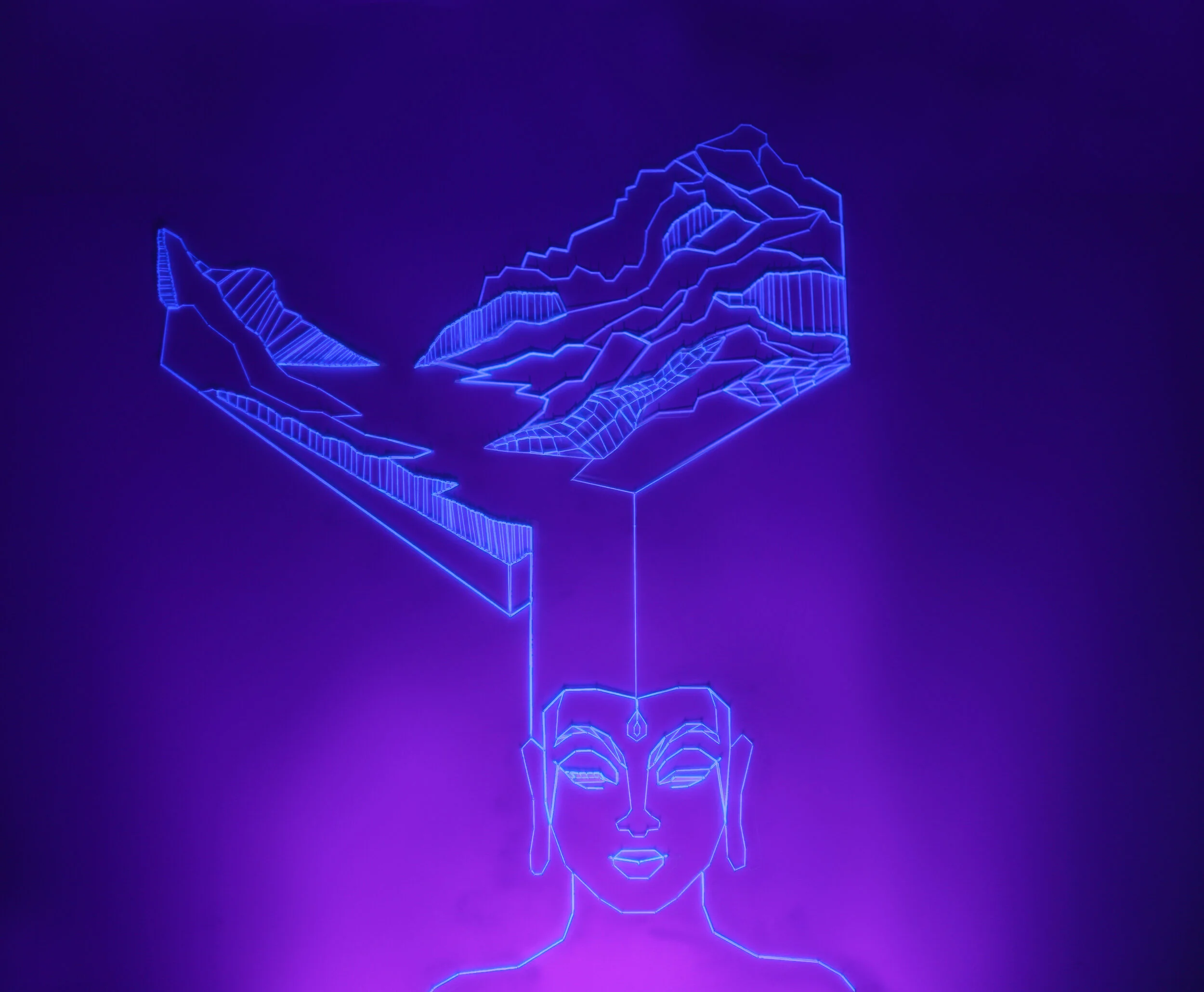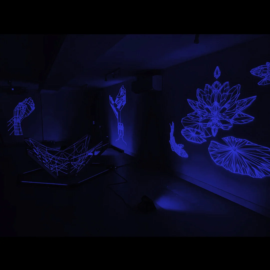 MY NAME IS WHYISHNAVE SUTHAGAR AND I AM AN INSTALLATION ARTIST BASED IN THE GTA. MY PRACTICE FOCUSES ON CREATING SITE SPECIFIC IMMERSIVE EXPERIENCES USING BLACK LIGHT, THREAD AND ORIGINAL SOUNDSCAPES.